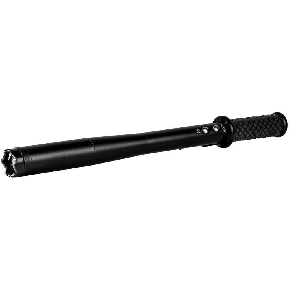 Knock your attacker out of the park with the Stun Bat! 80 million volts wait behind durable aircraft aluminum to give you the confidence needed to walk tall in sketchy circumstances. At just over 16″ with a rubber grip, the Stun Bat is a solid striking weapon. The intimidating stun power arcs brightly and loudly enough to dissuade most confrontations before they begin! Featuring a super bright 220 lumen flashlight, opponents are easily blinded and disoriented. The flashlight has 5 modes 100% brightness, 70% brightness, 30% brightness, Strobe, and SOS.