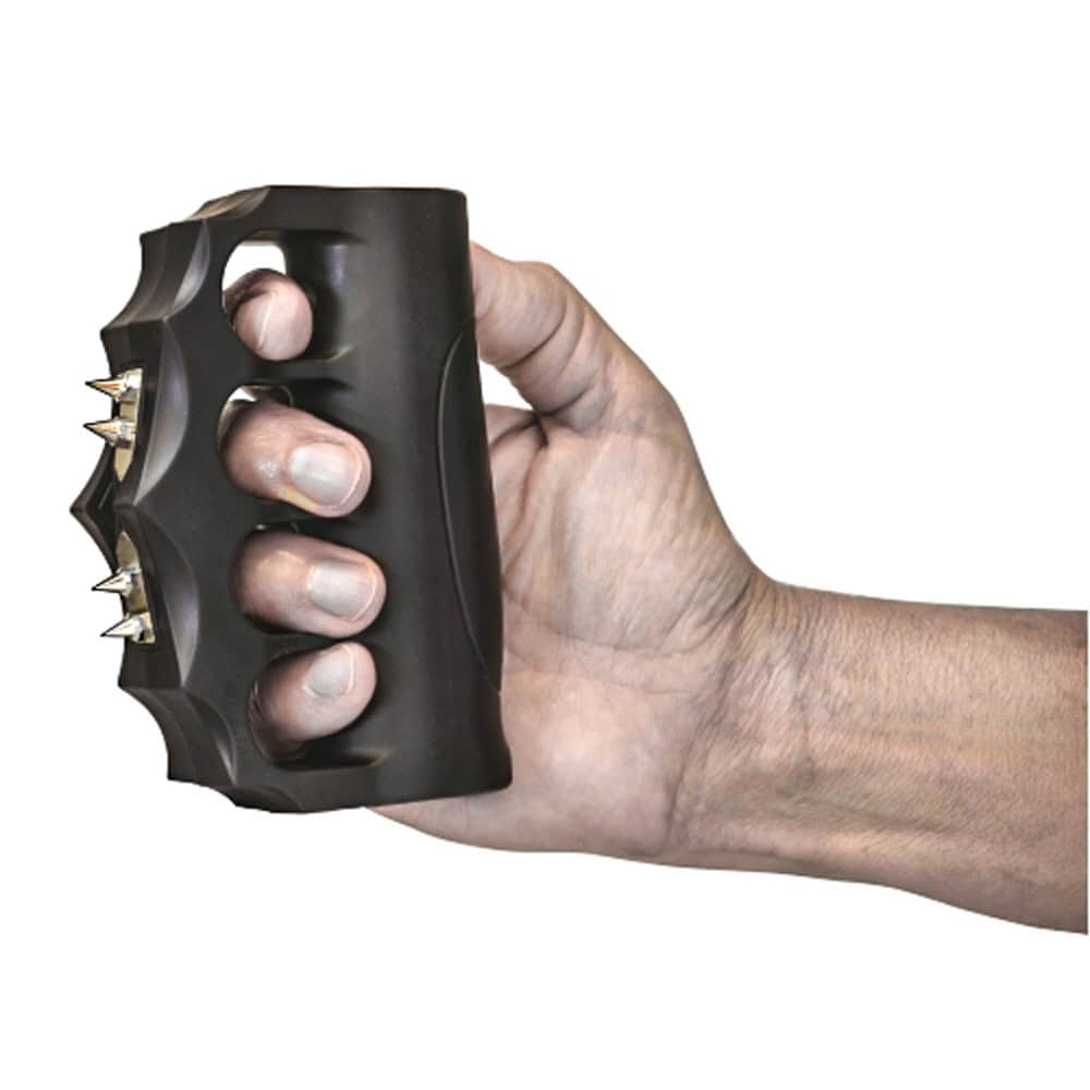 ZAP Blast Knuckles Extreme 950,000 Volt is a shocking high voltage stun gun that provides you with an easy way to protect yourself while on the go. The rubberized contour grip ensures you’ll have a firm grip while the 950,000 volts of stun protection await their call to action. Set in an intimidated spiked design, the four sharp electrodes add a layer of protection that on their own allow a serious blow to your attacker should you choose not to use the stun feature or the batteries need replacing. The spikes also offer you, during a self-defense situation, a way to collect DNA evidence that may prove useful to later present to the authorities. Use while jogging, walking alone at night, or exploring unfamiliar places for a convenient and instantly accessible way to keep yourself safe from the unknown.